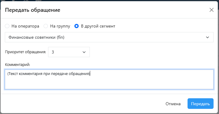 Для передачи между сегментами реализована кроссегметная передача обращений.