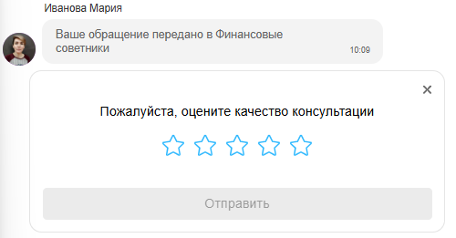 | Клиент переходит в чат с финансовыми советниками. Там уже имеется копия всей переписки |